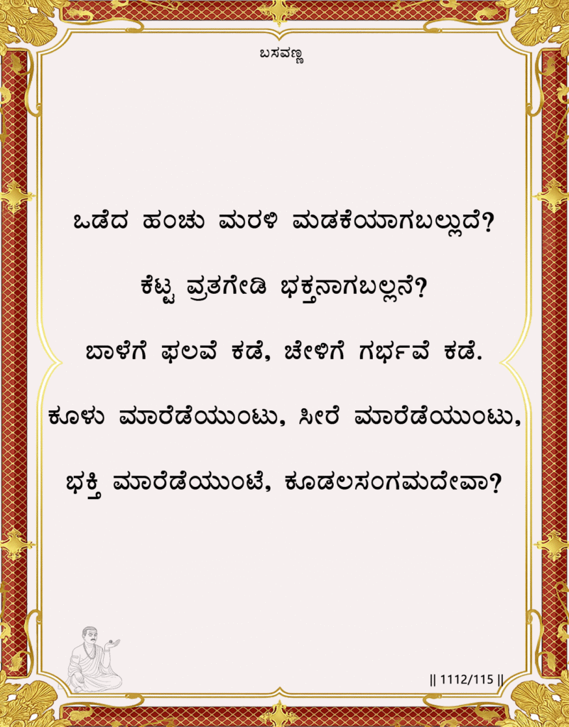 This Vachana liberates the seeker from the consumerist approach to spirituality. It affirms that the most precious spiritual gift slove, devotion, peace are utterly free and cannot be purchased. It directs the seeker inward, to the cultivation of a sincere and generous heart, which is the only genuine source of spiritual wealth. It calls for a religion of the heart, not of the wallet.