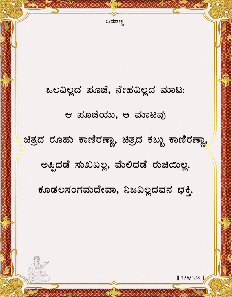 This Vachana is a powerful call to spiritual authenticity. It liberates one from the pressure to maintain a spiritual image. It encourages a private, heartfelt relationship with the Divine, where the true measure is the “sweetness” and “fragrance” of one own inner experience, not the approval or admiration of others. It values the substance of practice over the show.