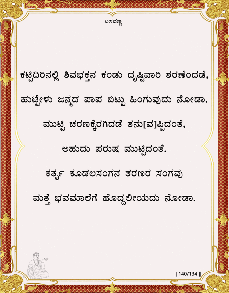 Historical Reality (Anubhava Mantapa Context): This Vachana establishes the Guru-shishya (Master-disciple) relationship and the sanctity of the Sangha (community) as central to the Lingayoga path. It democratizes grace, making it available not through priestly intervention but through the sincere reverence offered to any genuine Sharana, thus reinforcing the community’s egalitarian spiritual economy.