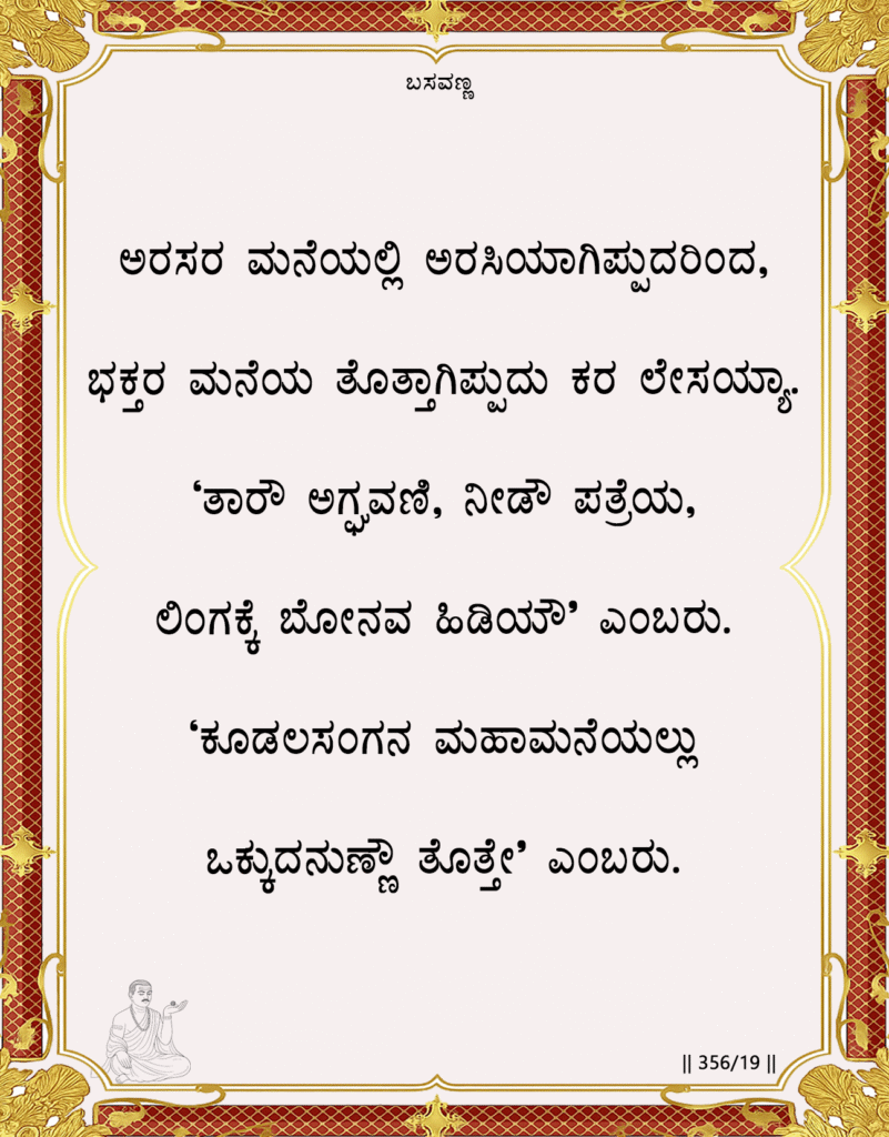 Historical Reality (Anubhava Mantapa context): This vachana is a direct critique of the feudal and caste-based society of 12th-century India. It embodies the revolutionary social experiment of the Anubhava Mantapa, where a queen (as a devotee) and a servant would sit together and share food, their worldly status rendered meaningless before their shared identity as Sharanas.
