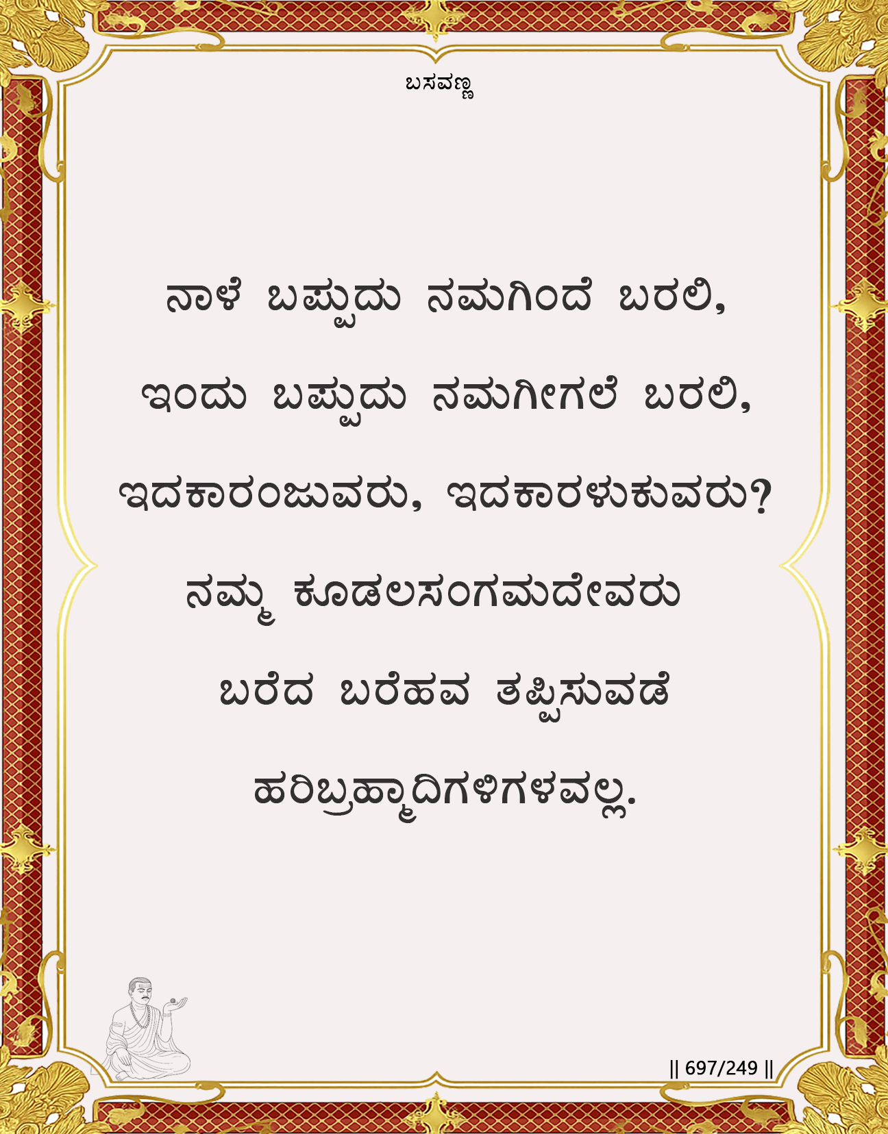 Basavanna teaches that whatever is destined is certain to arrive, whether sooner or later, and thus there is no reason for fear or sorrow. For the seeker who walks as a true companion of Koodalasangamadeva, destiny is already written by the Divine and cannot be altered even by other gods. Realizing this brings complete fearlessness especially before death. Death is not an end but a natural passage within the Lord’s order, and one who rests in His refuge meets it without trembling. This freedom from fear allows the seeker to live with clarity, courage, and unwavering trust in the Divine.