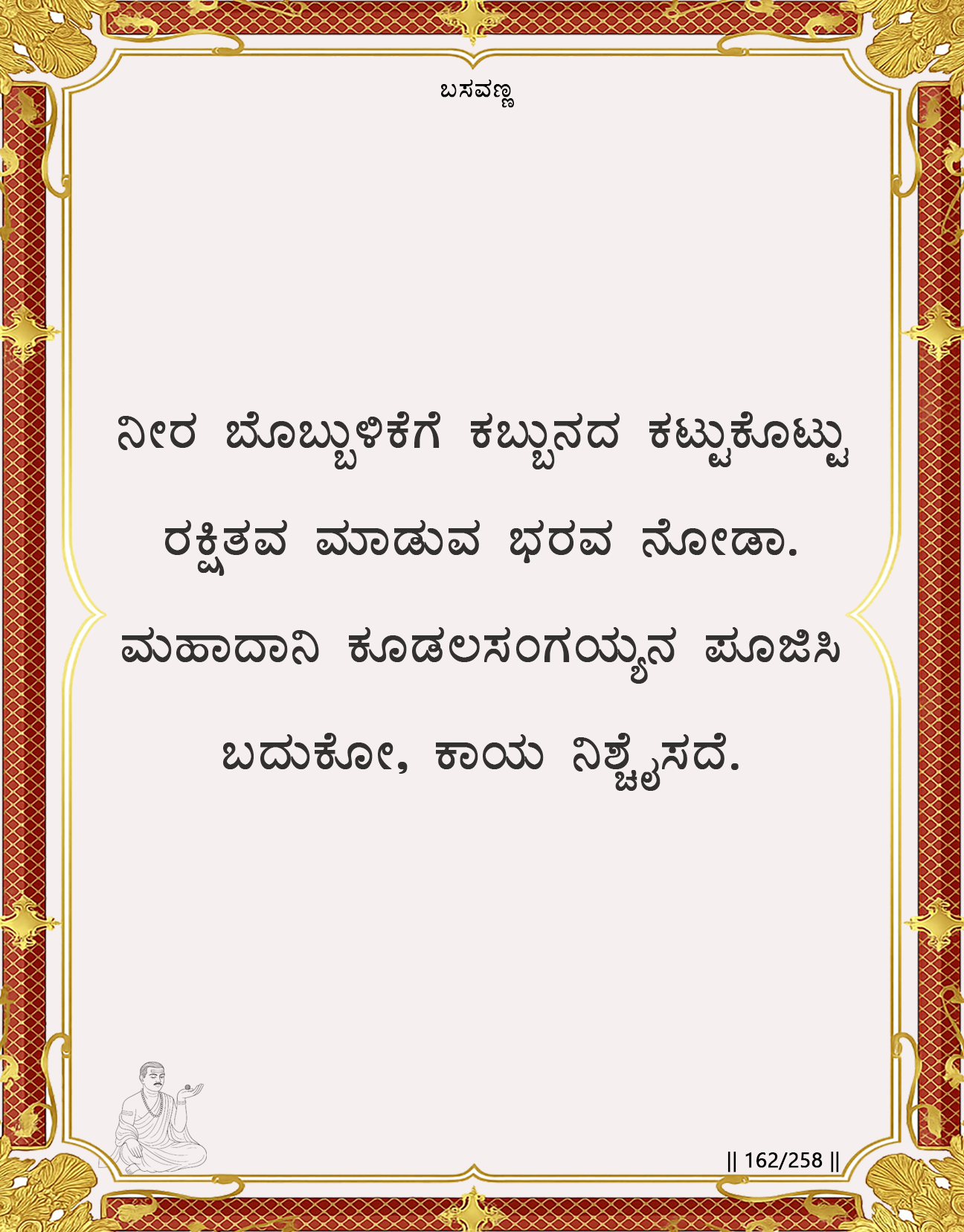 Historical Reality (Anubhava Mantapa Context): This vachana challenged the orthodox preoccupation with bodily purity, ritual protection, and caste-based identity all “iron shields” constructed to guard the fragile “froth” of social and ritual status. For the Sharanas, who included manual laborers and those from “impure” castes, this teaching was liberating. It declared that their true work was not to gain social shields but to transcend identification with the froth entirely through surrender to Koodalasangamadeva.