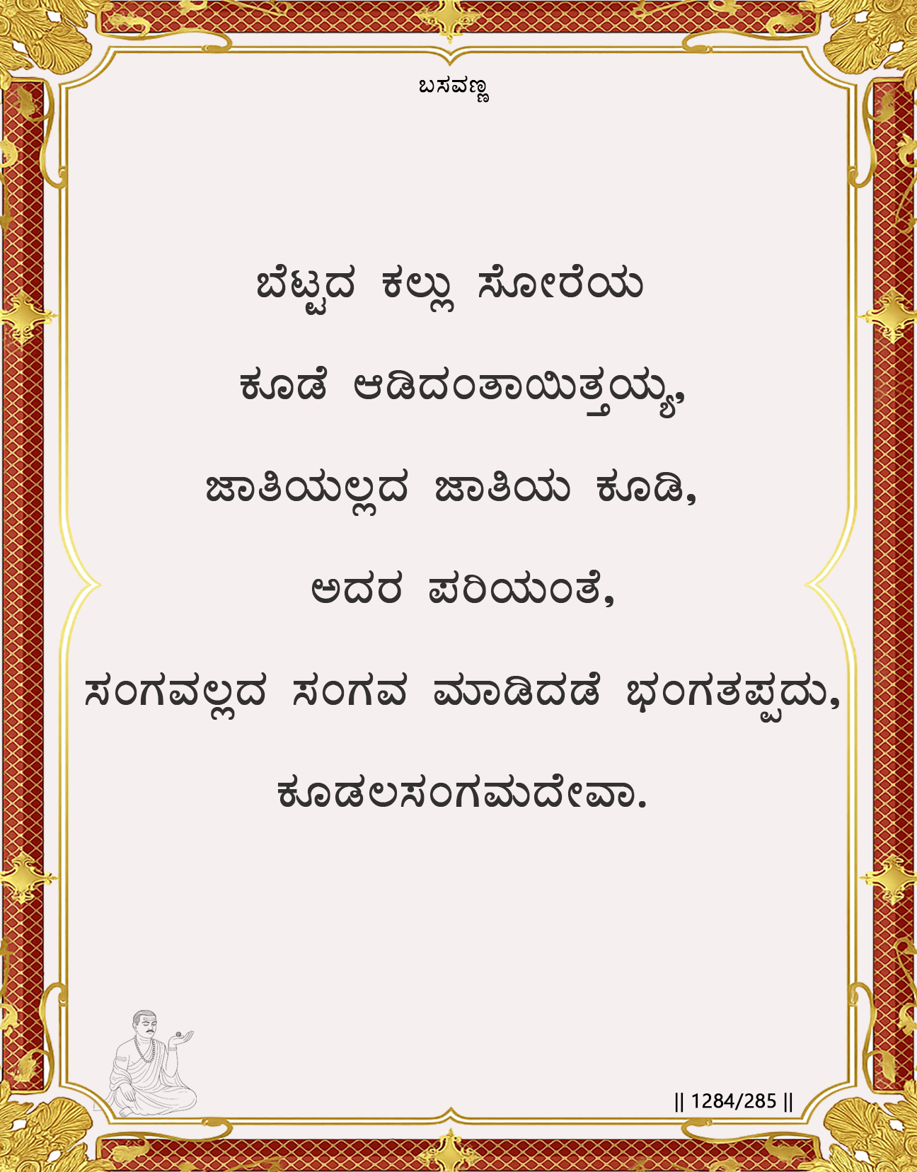 Basavanna uses the striking image of a hard stone and a hollow bottle gourd tumbling together. Though they appear momentarily united, their natures are utterly different. Likewise, worldly associations that lack true spiritual alignment inevitably lead to conflict or deviation. While ultimate reality is free of divisions like caste or religion, the seeker must still discern companionship wisely in worldly life. True fellowship is with those rooted in devotion and integrity; false companionship disrupts the inner journey toward Koodalasangamadeva.