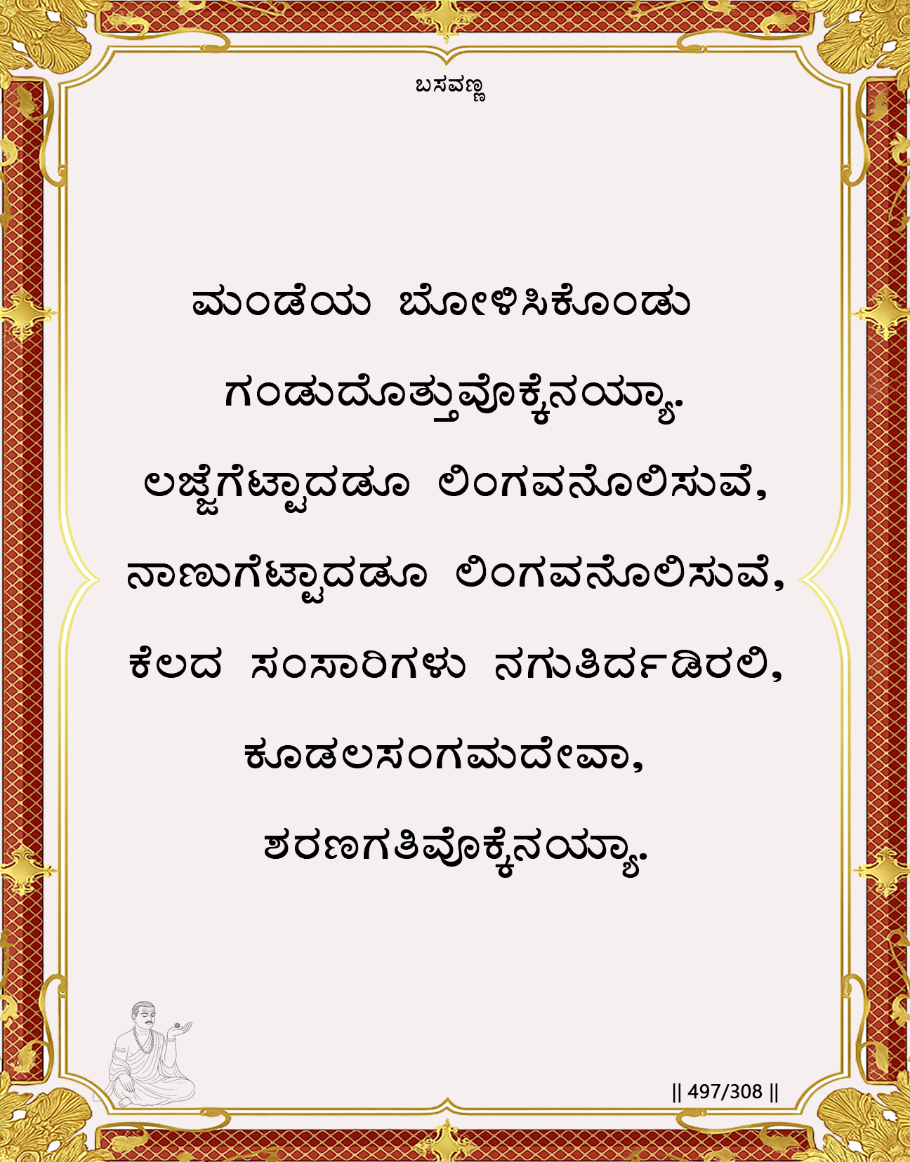 Freedom That Comes From Standing in Truth Alone This vachana proclaims the highest form of spiritual freedom the courage to live from the core of one’s inner truth, unshaken by society’s judgments. Basavanna uses the striking image of the shaven head, symbolizing renunciation not of the world, but of the world’s approval. It is a conscious divesting of external identifiers: status, reputation, honor, and even the fear of disgrace. Basavanna declares that true dignity arises not from social validation but from the unwavering alignment of one’s life with the Divine. When the seeker’s identity is rooted in Linga-consciousness, neither praise nor ridicule can add to or diminish their inner stature. Honor and shame become equally weight less mere shadows passing over a mind grounded in truth. This vachana marks a mature flowering of the Sharana path. The devotee is no longer defined by public perception or social norms; their identity arises directly from their inner union with the Divine. Basavanna transforms vulnerability into strength: the moment we cease fearing others’ opinions, devotion becomes fearless, pure, and uncompromised. To live as a Sharana, then, is to step into a freedom that is both radical and serene a freedom born of belonging only to the Divine.