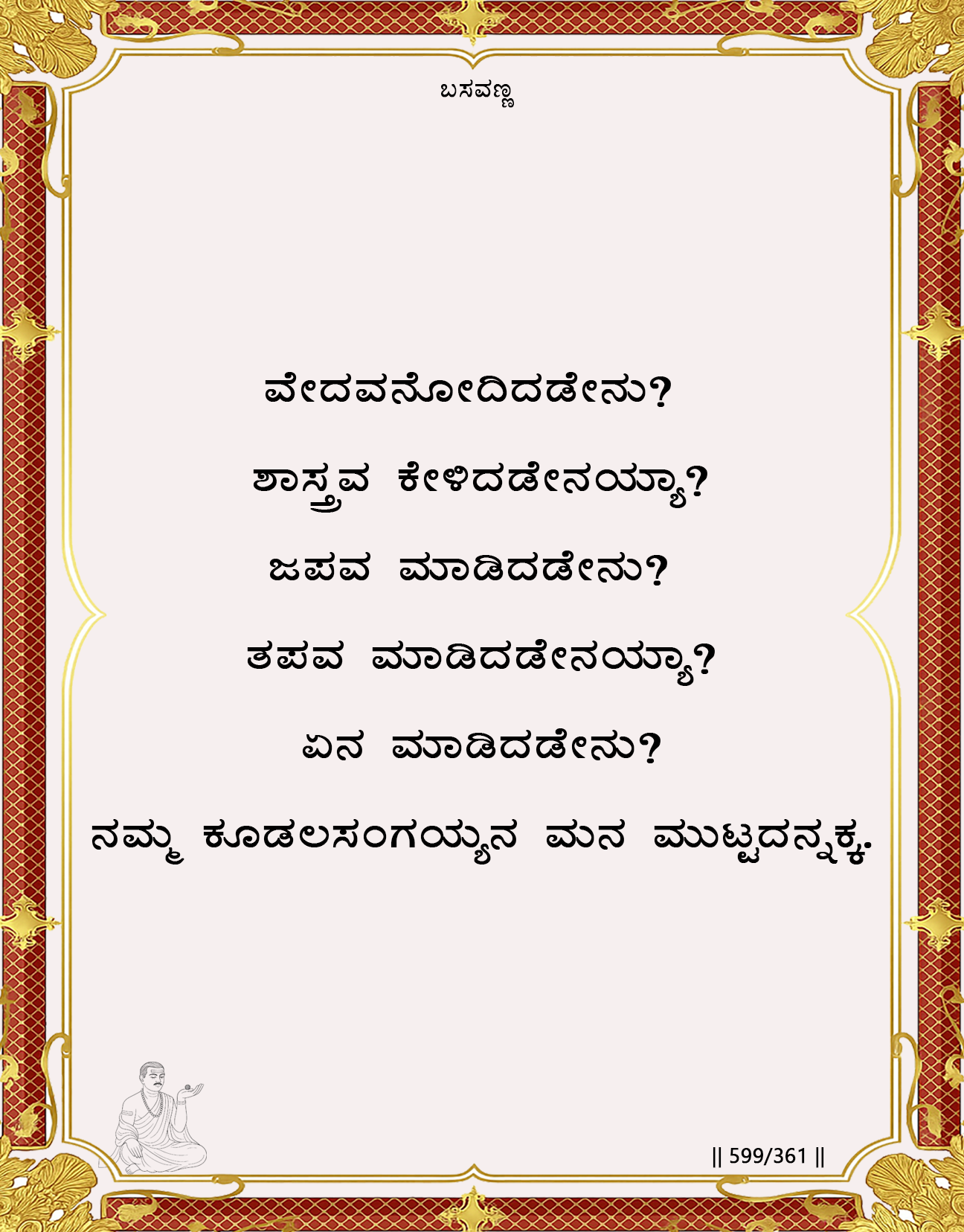Basavanna’s timeless message for a world drowning in noise and forgetting sincerity This vachana delivers Basavanna’s most essential criterion for spiritual practice: the primacy of heartfelt sincerity over mechanical observance. He confronts the universal tendency toward empty ritualism, asserting that even the most revered spiritual practices Vedic chanting, scriptural study, and ascetic disciplines become spiritually worthless if they fail to generate genuine connection with the Divine. This represents the core teaching that spirituality is qualitative rather than quantitative, measured by depth of heart-connection rather than external performance.