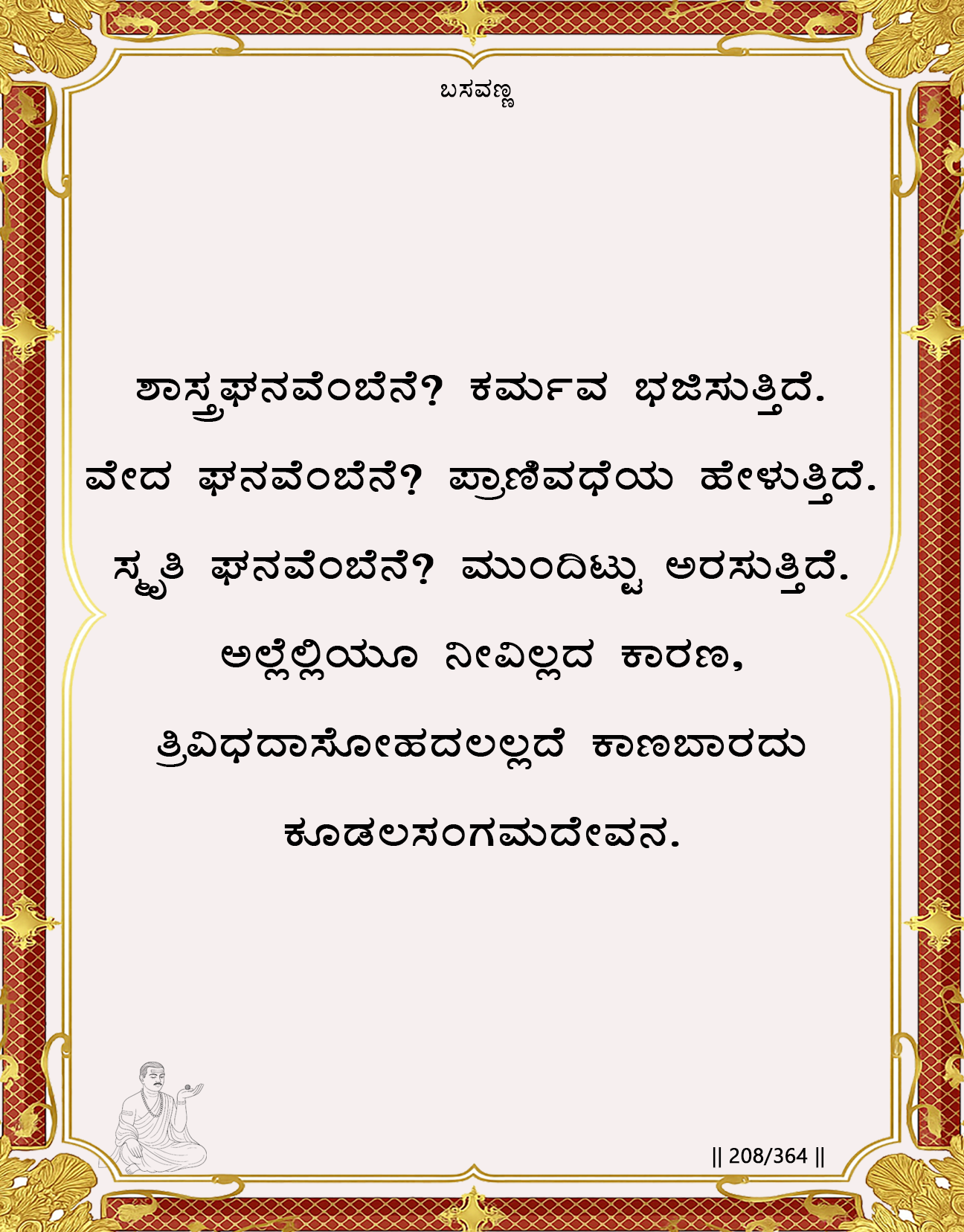Historical Reality (Anubhava Mantapa context): This vachana was a theological declaration of independence for the Lingayoga movement. It formally severed the community’s dependence on Brahmanical scriptural authority, which was used to justify caste, ritual violence (bali), and royal tyranny. It established the Anubhava Mantapa’s authority on the direct experience (Anubhava) of its realized members (the Gurus and Jangamas), anchored by the personal Linga.