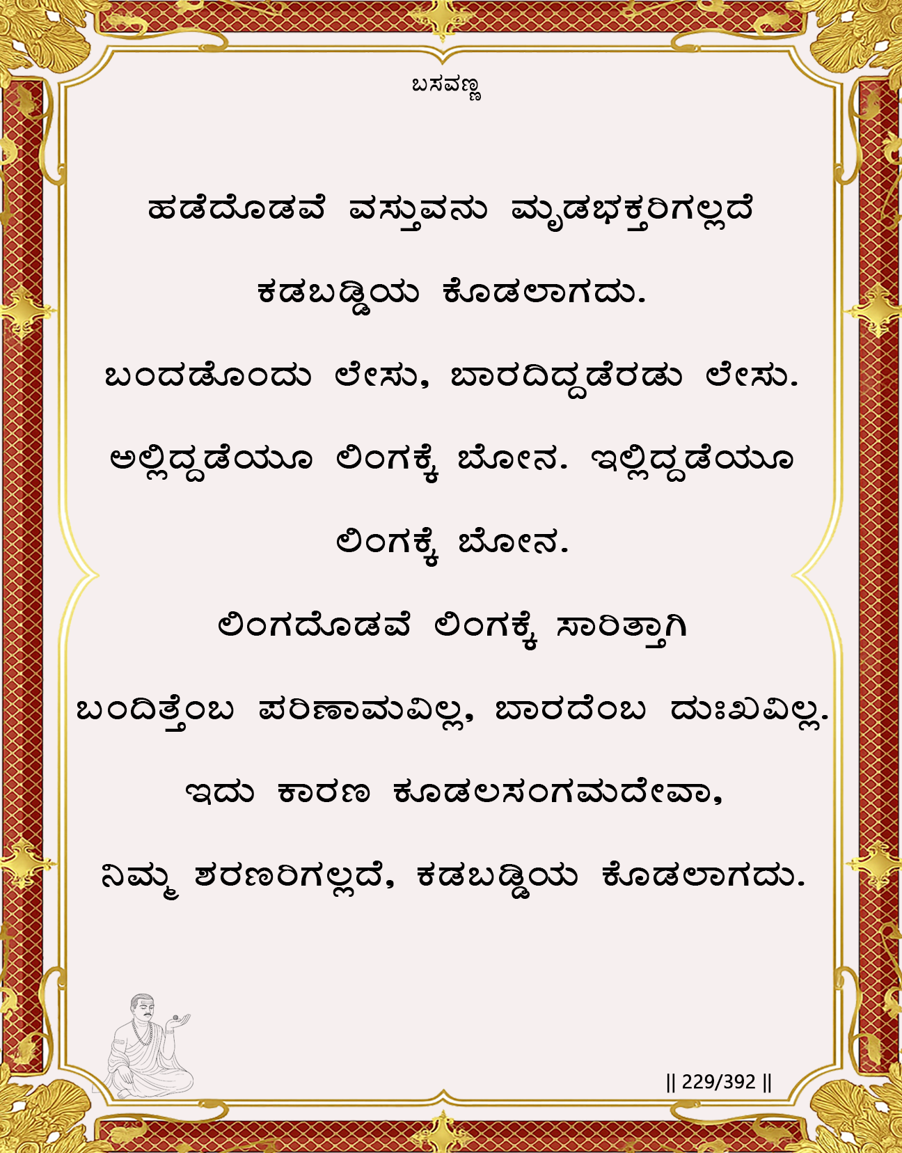 Historical Reality (Anubhava Mantapa Context): This vachana is the constitutional doctrine of the Anubhava Mantapa’s socio-economic experiment. As treasurer, Basavanna applied this to state economics, creating systems where wealth was dasoha (community offering), not svamitva (private property). It directly challenged feudal and Brahminical models of accumulation and hereditary ownership, framing the entire community as “children of Shiva” entitled to the resources held in trust.