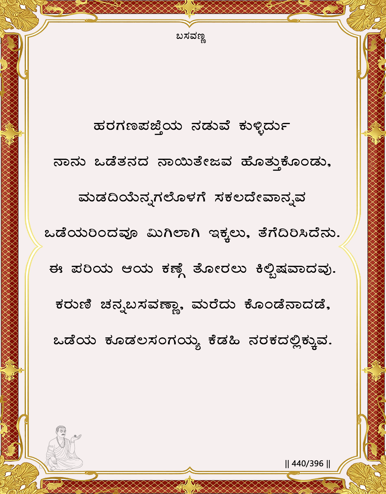 Historical Reality (Anubhava Mantapa Context): This is Basavanna’s intimate governance manual for the Anubhava Mantapa. As the community’s leader and treasurer, he publicly confesses a leadership failing: accepting special treatment. He models radical accountability to uphold the foundational rule of Dasoha. The vachana served as a living check against the spiritual aristocracy and guru-worship that could destroy the egalitarian community from within.