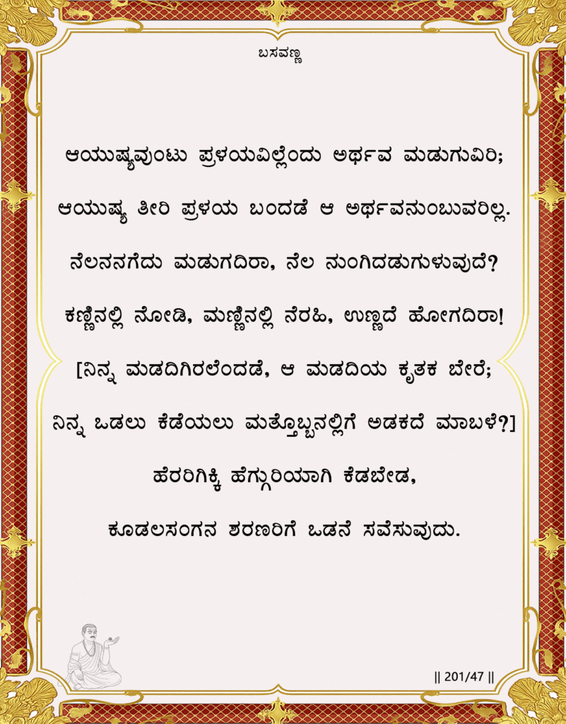 This vachana is the cure for status anxiety and the fear of missing out. It reframes life as an opportunity for conscious divestment. It teaches that security is found not in what you have, but in what you can joyfully give away. It turns the terror of death into the motivation for a life of profound meaning and connection.