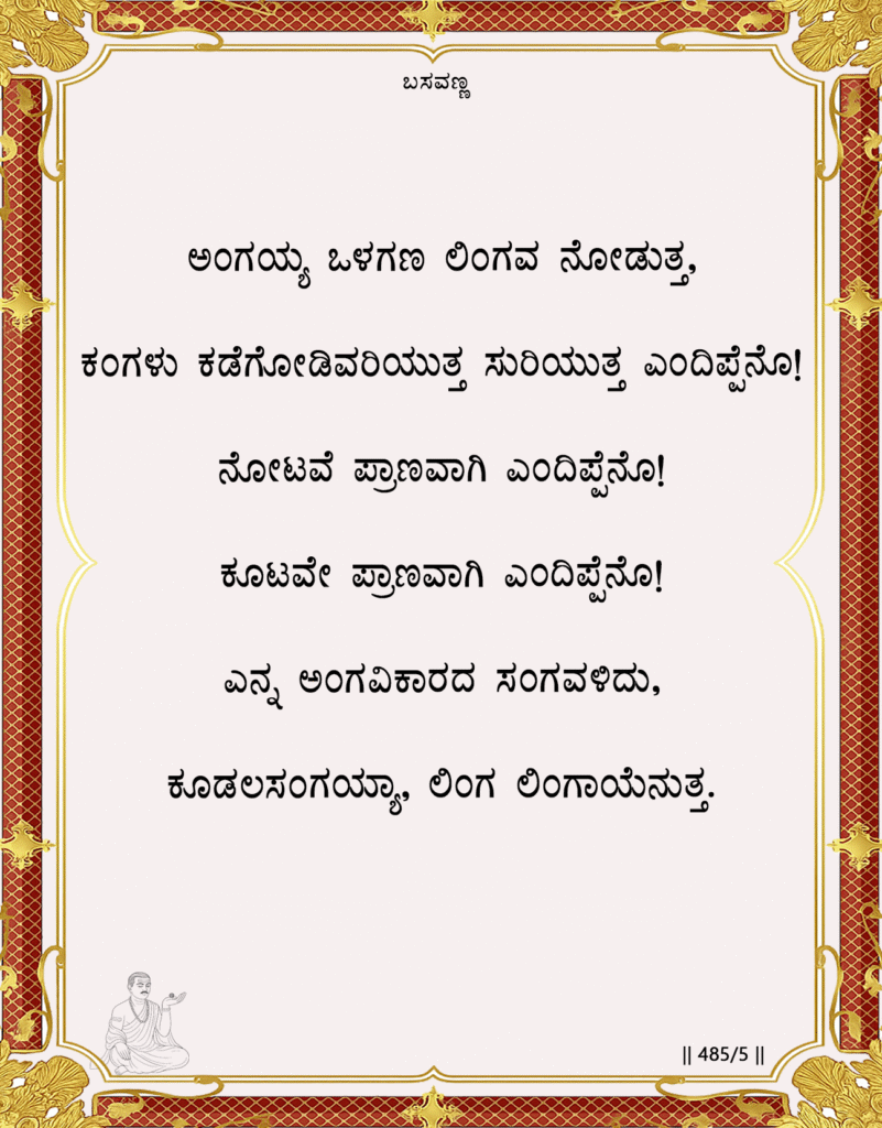 Even after the inner Linga is realized, the senses may still wander, and attachments may persist. The poet questions whether mere sensory pleasure or social company has become his purpose. Recognizing these as defects of bodily attachment, he prays to Kudalasangama Deva to fix his gaze solely on the Linga.