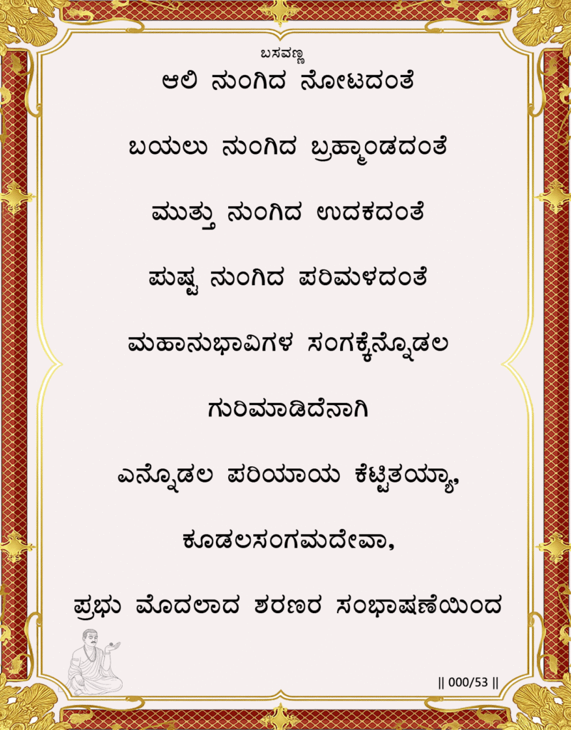 Basavanna shows how subtle, transformative processes like sight, fragrance, or a pearl’s hidden absorption mirror the inner change that occurs in the presence of true sharanas. Near realized souls, the ego dissolves naturally, effortlessly. Spiritual companionship itself becomes the purifier, turning the rigid “I” into humility before Kudalasangamadeva.