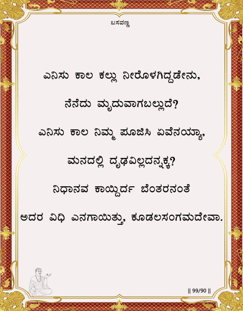 Linga (Divine Principle): The Linga is invoked as “Koodalasangamadeva,” the Lord of the meeting rivers. This symbolizes the confluence of the individual soul with the Divine, the ultimate goal of transformation. The Linga is the transformative power that alone can dissolve the stone like heart and unlock the buried treasure.